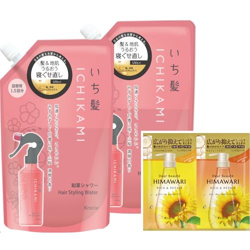 いち髪 髪&地肌うるおう 寝ぐせ直し 和草シャワー 詰め替え 375ml×2 セット おまけ付き | 寝癖直しウォーター ヘアミスト ヘアウォーター スタイリング ヘアケア ダメージケア 補修