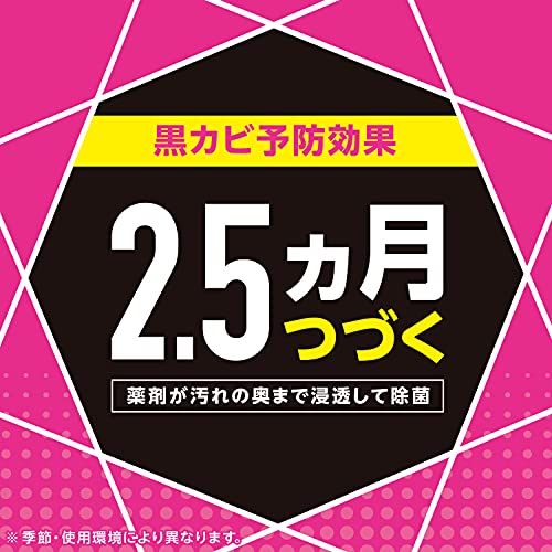 面倒な浴室の黒カビ掃除から解放されたい方へ。塩素不使用でお風呂中すみずみまで防カビ効果が約2.5ヵ月持続します。