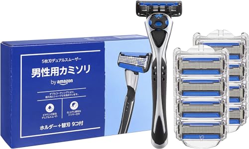 by Amazon 5枚刃 デュアルスムーザー 男性用 カミソリ 本体(ホルダー) 本体(刃付き)+ 替刃 8コ付 (SOLIMO)