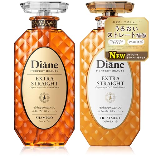 Dianeの「エクストラストレート」セットは、うねりや広がりが気になる髪のためのシャンプー&トリートメントです。