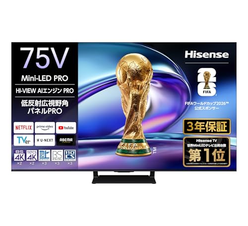 ハイセンスの75V型4K Mini LED PROテレビは、高輝度と高コントラストを両立した迫力の映像をお届けします。