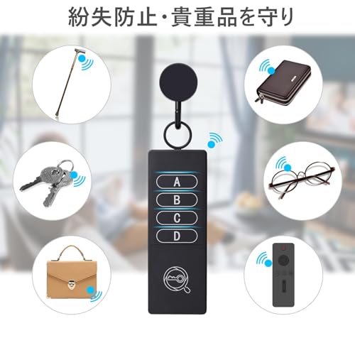 送信機のボタンを押すだけで、対応する受信機が大音量で鳴り、場所を教えてくれます。