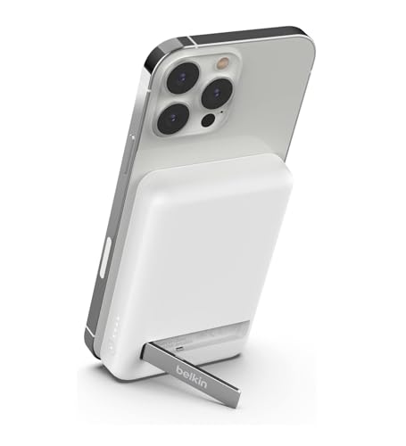 【VGP金賞受賞】Belkin MagSafe対応ワイヤレスモバイルバッテリー 3C対応CCC 5000mAh(7.5W) iPhone 17,16~12 対応パススルー充電対応 PSE認証 機内持込可能 充電用ケーブル同梱 メーカー保証2年キックスタンド付き ホワイト BPD004btWT