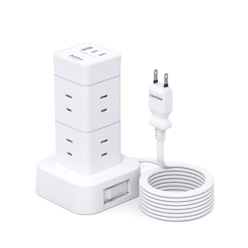 Addtamのタワー型電源タップは、縦型のコンパクト設計でデスク周りをすっきり整理。 最大8個のACコンセントと3つのUSBポートで、複数機器の同時充電・給電が可能です。