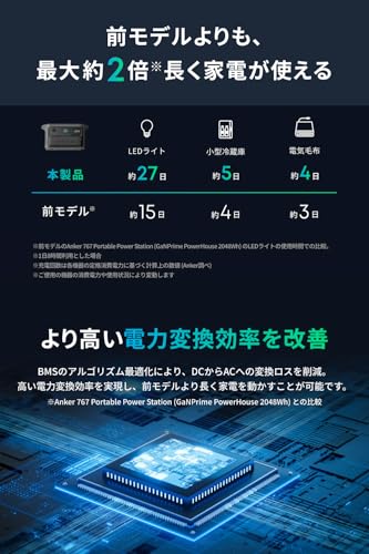 Anker Solix C2000 Gen 2は、2048Whの大容量ながら2000Wh帯で世界最小クラスのコンパクトサイズを実現したポータブル電源です。