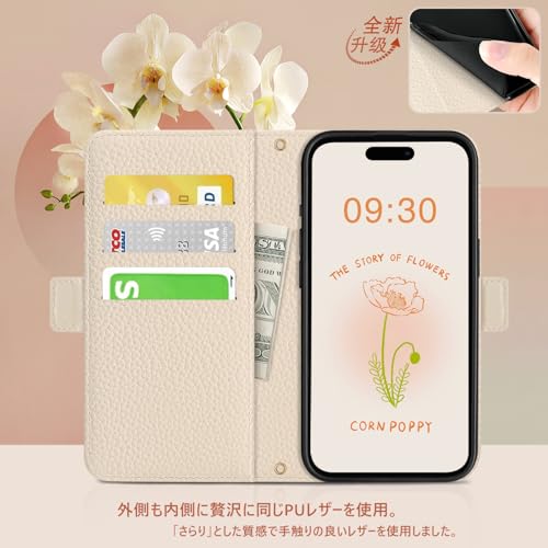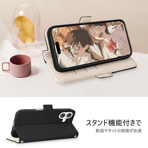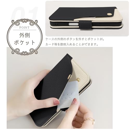 CASSYOOK for iPhone 16 ケース 手帳型 おしゃれ 表面ポケット便利 アイフォン 16 ケース 財布型 カード収納 スタンド機能 あいほん 16 ケース 手帳型 シンプル 軽量 耐衝撃 レディース アイフォン16 ケース 高級PUレザー 放熱性 汗や指紋防止 全面保護 耐汚れ(ブラック)
