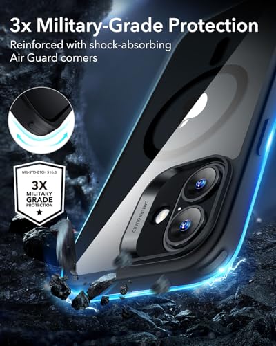 ESR iPhone 16 ケース【カメラコントロール・Magsafe対応】 傷に強い背面 ワイヤレス充電 ストラップホール付き 耐黄変 耐衝撃 マグネットスマホケース あいふおん16ケース HaloLock搭載 ハイブリッド磁気カバー iPhone16対応 クリア_ブラック