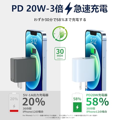 For iPhone14-充電器-アイフォン充電器-20W-PD急速充電【タイプc ACアダプター*2個+1.8M lightingケーブル*2本付き】GEMSONG MFi認定済み USB-C to ライトニグケーブル 充電器 高耐久 軽量 高速データ同期 アイホン充電 for iphone14/13/12/pro/max,pad,carplayなどlighting設備対応-ブルー