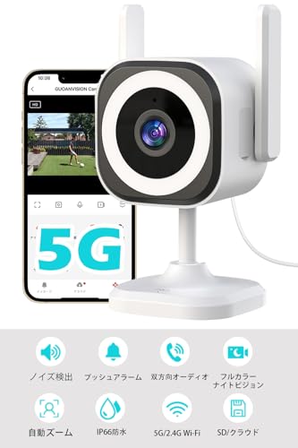Guoanvison 5G/2.4GWifi 屋外防犯カメラ、屋内ベビーモニター、ペットカメラ 、ベビーシッター/高齢者監視カメラ、300万画素見守りカメラ、IP66防水、カラー/赤外線ナイトビジョンモード、双方向音声、アラームサイレン、クラウド/SD 24時間常時録画 メーカー保証3年