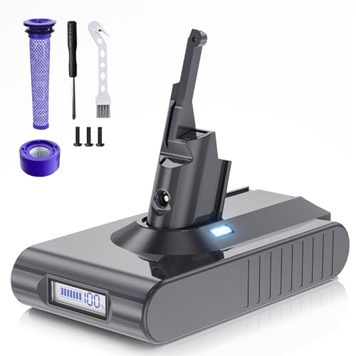 Maxofpowr ダイソン V8 バッテリー SV10 交換用 21.6V 8000mAh 大容量 LCD残量表示 V8 Slim Fluffy V8 Slim V8 Fluffy V8 Motorhead V8 Absolute V8 Animal など対応 全V8シリーズ対応 PSE認証 保護回路搭載 壁掛け対応