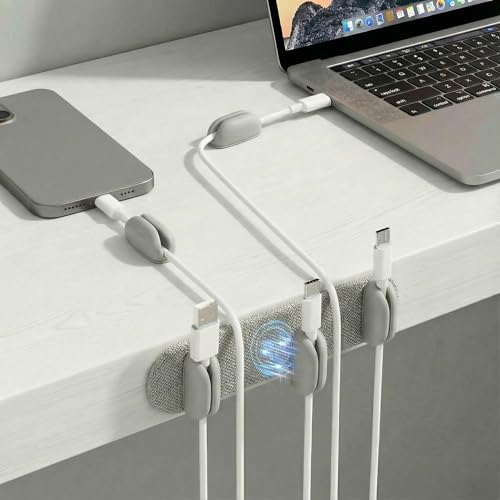 Pebel ケーブルホルダー マグネット 【インテリアに馴染むファブリック素材/強力磁石】 ケーブルクリップ 配線整理 5本固定 USBケーブル/充電ケーブル/Type-C 対応 卓上 デスク 机 PC 車内 壁 配線止め コードクリップ 固定 落下防止 貼り付け 接着 ワイヤーコード 整理 収納 すっきり ライトグレー