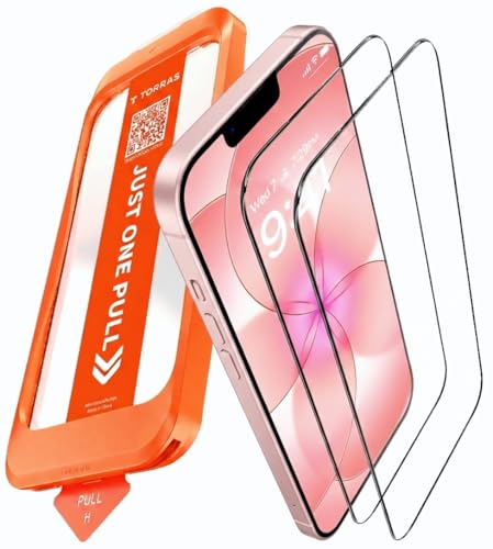 TORRAS For iPhone 17e ガラスフィルム 航空宇宙ガラス 周り浮きゼロ 10H+硬度 米軍MIL規格 全面保護 10倍強化 極細ベゼル対応 ラウンドエッジ 超簡単貼り付け ワンプル(Just One Pull) ガイド枠付き 気泡レス 指紋防止 サラサラ 落下・破損防止 2枚セット ガラス アイフォン17e 用 保護フィルム 6.1インチ GlassGo Ultra