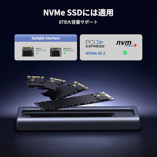 2230から2280サイズのNVMe SSDに対応し、付属のシリコンカバーで落下衝撃からも守ります。2年間の保証付きで、安心してお使いいただけます。