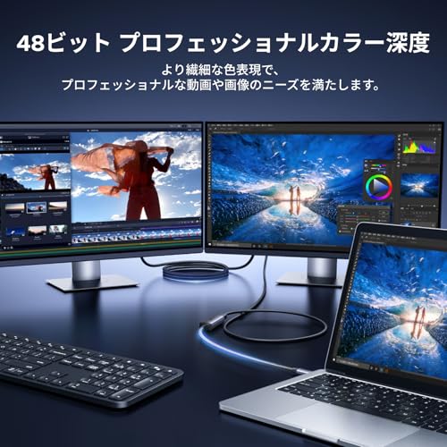 80Gbpsの高帯域幅により、8K@120Hzや4K@240Hzでも安定した伝送を実現し、FreeSync/G-Syncにも対応。