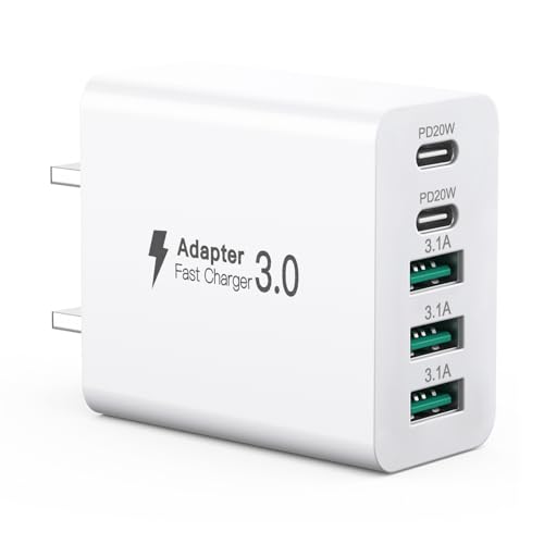 USB C充電器 50W、【2つのUSB-Cと3つのUSB-A】を備えた5ポートマルチType-Aプラグ、総電力50WUSB電源アダプタ壁コンセント、急速充電PD 3.0電源アダプタ iPhone 11/12/13/14/15/16/XS/XR/SE/8 Plus/サムスン/携帯電話/タブレット対応