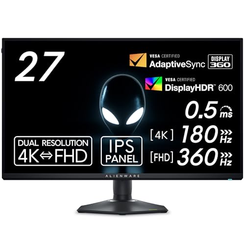 【Amazon.co.jp限定】Dell AW2725QF-A 27インチ デュアル解像度(4K/FHD) Alienware ゲーミングモニター(5年間無輝点保証/IPS,非光沢/DP1.4×1,HDMI2.1×2/DCI-P3 95%/縦横回転,高さ調整/0.5ms,360Hz(FHD),180Hz(4K),G-SYNC Compatible,DisplayHDR 600)