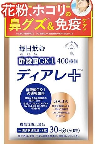 キユーピー ディアレ プラス 30日用60粒 [ 花粉 ホコリ ハウスダスト 等の鼻グズ対策に 免疫 免疫ケア 酢酸菌 gaba ギャバ サプリ サプリメント 乳酸菌 併用可 にごり酢 ] 32%OFF ¥3,780 ¥2,552 28ポイント 6日前 3月20日5時19分 ドラッグストア ドラッグストア