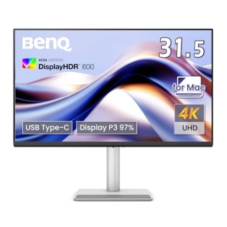 ベンキュージャパン BenQ Mac向けモニター MA320U (31.5インチ/4K UHD/ナノマットコートIPSパネル/Display P3 97%/sRGB 99%/VESA DisplayHDR 600/USB Type-C(90W給電)/HDMI×2/スピーカー内蔵(treVolo 3W×2)/高さ調整・回転/ブルーライト軽減/フリッカーフリー/Macbookに最適/シルバー筐体)