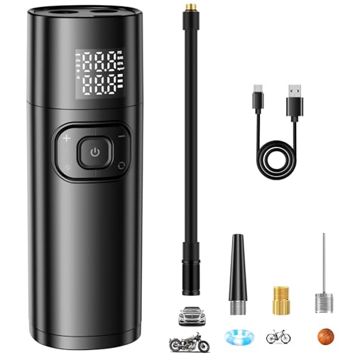 空気入れ 電動 最大150PSI 空気圧測定 自動停止 仏式 米式バルブ対応 小型 Type-C 充電式 コードレス SOS LED懐中ライト付き 夜用 エアコンプレッサー エアーポンプ