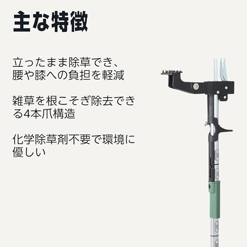 4本の爪で雑草を根元からしっかり除去するので、再発生を防ぎます。