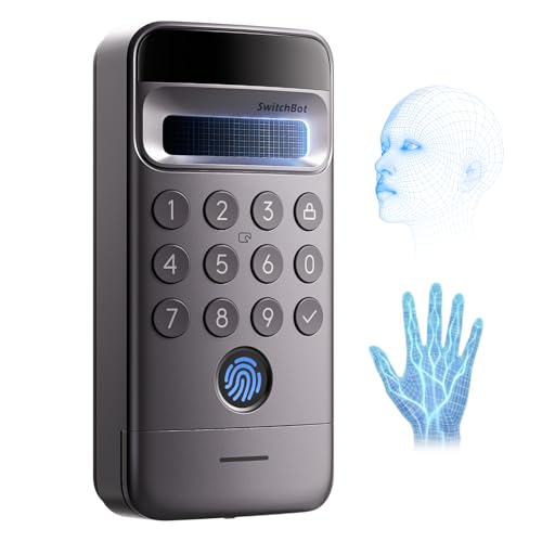 SwitchBot 顔認証パッドPro 手のひら静脈認証 指紋認証 スマートロック- 暗証番号 スイッチボット ドアロック カギ 交通系ICカード Suica PASMO Bluetooth ソーラーパネルで充電可能 盗難防止 工事不要