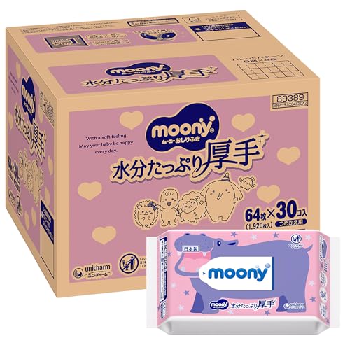 【おしりふき】ムーニー おしりふき やわらか厚手素材 純水99% 詰替 1800枚(60枚入×30)無添加(アルコール・香料・パラベン不使用)日本製 [ケース品]【Amazon.co.jp限定】