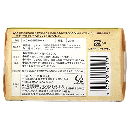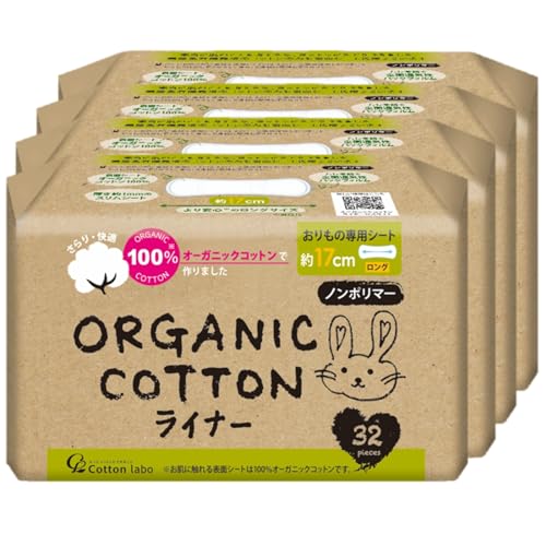 【まとめ買い】 コットン・ラボ オーガニック コットン おりものライナー ロング 17㎝ 32枚 × 4個 〔かぶれにくい〕