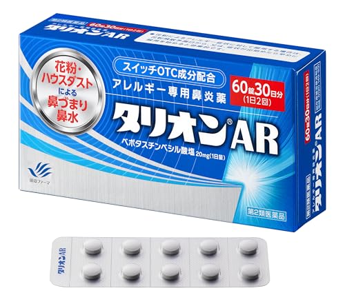 【第2類医薬品】タリオンAR 60錠は、鼻水・鼻炎の症状緩和に用いられるお薬です。