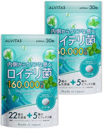 【高濃度 ロイテリ菌 480億個 x 22種の乳酸菌】生きた ロイテリ菌 サプリメント 60日分 ミント味 ALVITAS 22種の乳酸菌 5種のビフィズス菌 ろいてり菌 キシリトール 葉酸 シャンピニオンエキス タブレット 菌活 エチケット プロバイオティクス REGOLITH