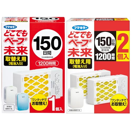 どこでもベープ 未来 150日 取替え×3個(1個入り+2個入り)電池薬剤一体型カートリッジ 電池式虫除け 長期間持続 ユスリカ チョウバエ 無香料 フマキラー【まとめ買い】