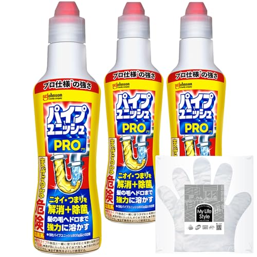 パイプユニッシュ プロ パイプクリーナー 濃縮タイプ お掃除用手袋付き パイプ掃除 お風呂 排水溝 排水口 洗浄 洗面台 シンク 詰まり 洗浄 大容量 まとめ買い 400グラム(×3)