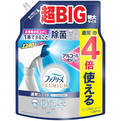 ファブリーズ 消臭スプレー 布用 PREMIUM 速乾ジェット 無香料 アルコール成分入り 詰め替え 1280mL