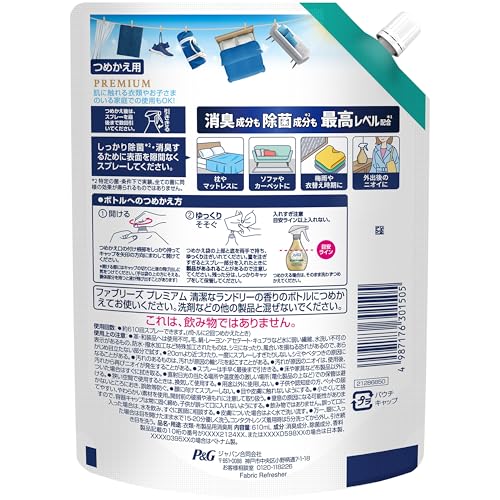 ファブリーズ 消臭スプレー PREMIUM 消臭+除菌成分最高レベル配合 衣類・布製品用消臭剤 清潔なランドリーの香り 詰め替え 特大 610mL
