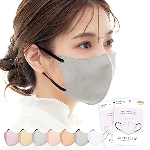 CICIBELLAの立体バイカラーマスクは、スカイグレーと紐ブラックの2色使いがおしゃれな不織布マスクです。立体構造で呼吸が楽で、耳が痛くなりにくい設計です。