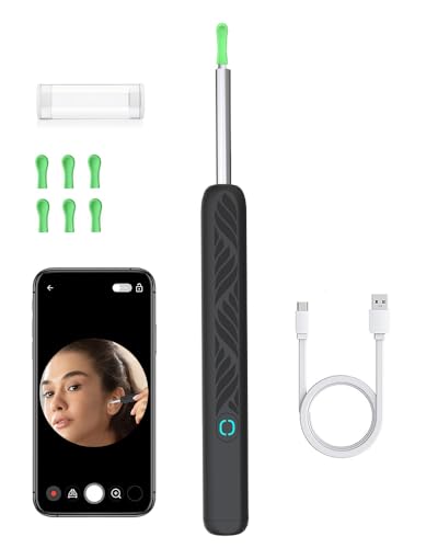 Mahousky 耳かき カメラ 耳掃除 イヤースコープ 500万画素 1080P 3.5mm超小型レンズ 光る耳かき イヤースコープ 耳垢除去 ワイヤレス WIFI接続 iphone&Android対応 日本語取扱説明書付き(グリーンホワイト) (ブラック)