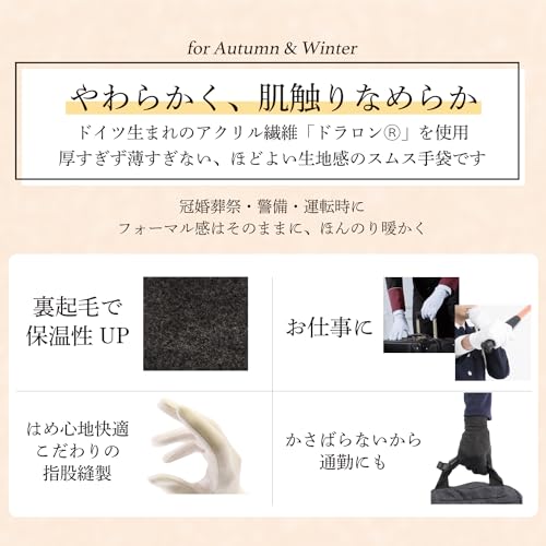 おたふく手袋の軽防寒スムス手袋は、秋冬の装いにぴったりのフォーマルグローブです。