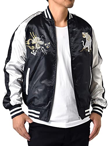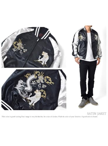 [アルージェ] スカジャン メンズ サテン 和柄 ジャケット MA-1 秋 春 アウター / D7M / M 白龍虎柄ネイビー