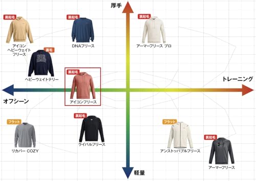 フードと身頃はアイコンフリース、袖はヘビーウェイトジャージです。