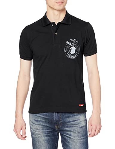 [インディアン] 鹿の子編みのコットンポロシャツです。 エンブレムのプリント。 IC-2741 ブラック