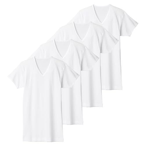 商品名: インナーシャツ やわらか肌着 綿100% 抗菌防臭加工 半袖V首 4枚組 SV6115 綿100%のやわらかな肌触りで、一日中快適に過ごせます。