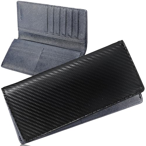 [グレヴィオ] カーボンレザー 小銭入れ YKKファスナー ギフトBOX入り 薄い 薄型 コンパクト 長財布 メンズ 財布 薄型
