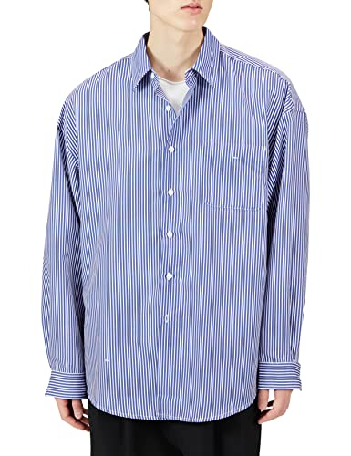 ジュンレッドのピーチブロードドロップショルダーシャツは、落ち着いたブルーが印象的なメンズ向けシャツです。