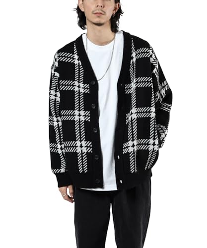 [タイムリーワーニング] ダブルジャガードVネックカーディガンは、秋冬に活躍するメンズアイテムです。