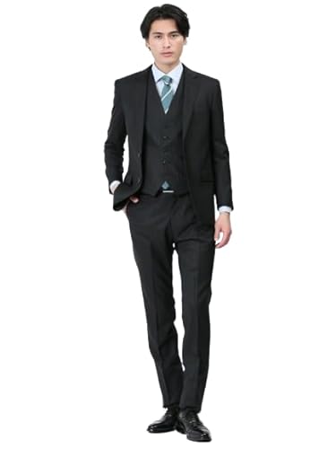 ジャケット、パンツ、ベストの3ピースセットで、フォーマルから準フォーマルまで幅広く活躍します。