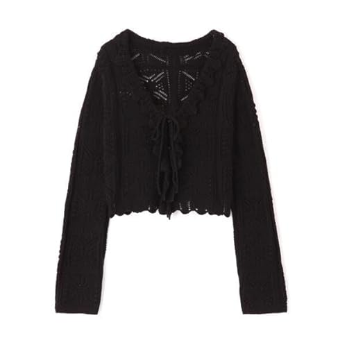 [フリーズマート] カーディガン 透かし編みクロップドニットカーディガン イエロー Free Size
