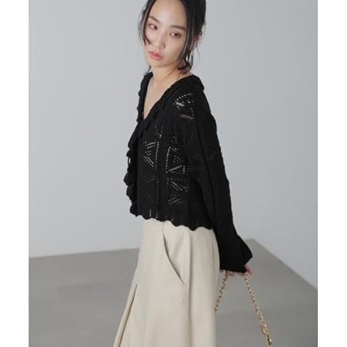 アクリルとコットンの混紡素材で、柔らかな肌触りが特徴。 透かし編みの軽やかな風合いが季節の変わり目にぴったりです。