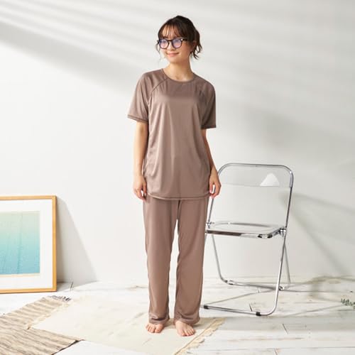 ペットの毛が付かない 半袖 ルームウエア上下セット レディース 345189NBNM