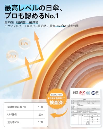 9層構造と2重防晒でUVカット率100%、遮光遮熱を実現。