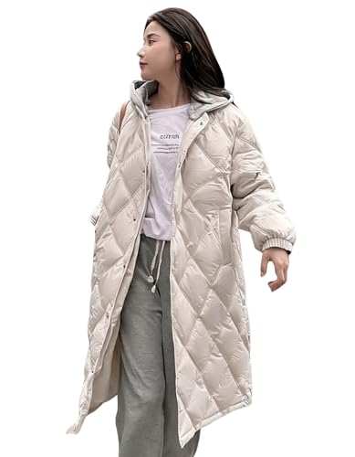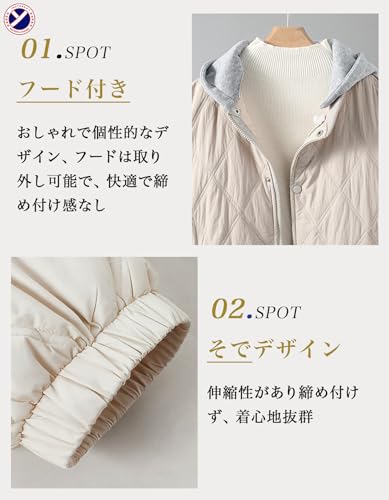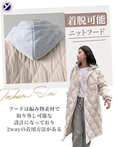 [inotenka] ロングコート レディース 中綿 ダウンジャケット フード付き 上品 2WAY 着痩せ 体型カバー 軽量 柔らかい 防寒 防風 ダウンコート 秋冬 S-2XL(S ベージュ)
