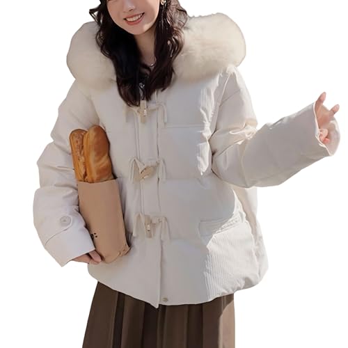 [Kayiyasu] ジャケット レディース ダウンジャケット 中綿ジャケット 中綿コート アウター 冬 暖かい 防寒 S-XL ファー フード付き 韓国風 可愛い(S ベージュ)